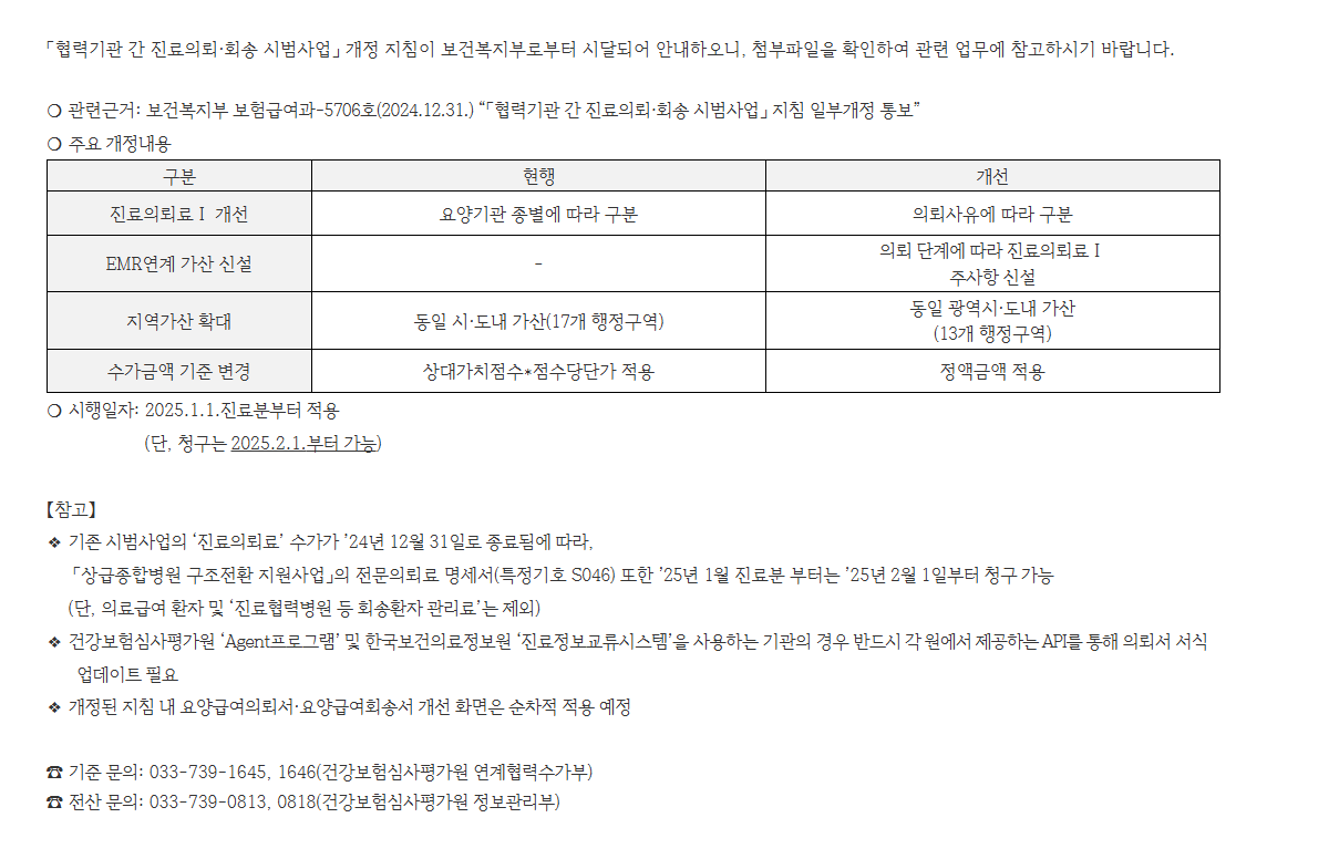 올해 1월1일부터 적용되는 본 시범사업의 개정 내용은 기존에 적용되었던 수가 코드와 적용사항에 변동이 있기 때문에 본 시범사업에 참여하고 있는 의료기관에서는 참고하시길 바랍니다.